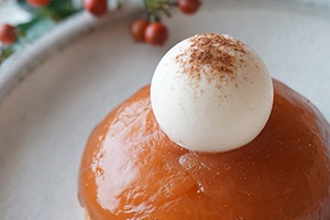 低温で焼いた無農薬りんごがまるごとキャラメリゼされた林檎は、ほろ苦さは控えめで、生キャラメルのような濃厚なりんごの自然な甘味。古代小麦のほろほろパイ生地は、濃厚な林檎と絶妙なバランス。
