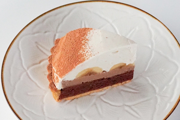バナナとチョコは絶対!な相性抜群のタルト。バレンタインシーズンに絶妙な味わいです。自家製ローホイップとバナナ、チョコとバナナ、チョコとローホイップ。。。美味しさ無限です。
