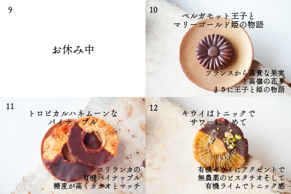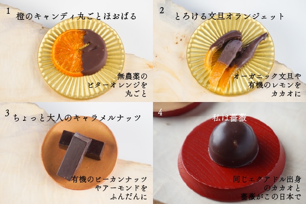 エクアドル産の有機ローカカオを使い、最高のパートナーと掛け合わせたチョコレートを20種類作りました。