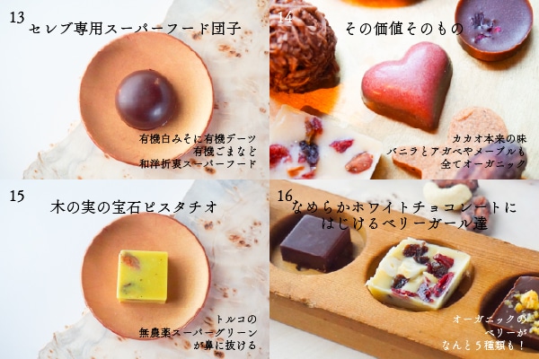 非加熱で酵素の風味を活かしたり、カカオバターを贅沢に使ったりと、多彩なアプローチで驚きと喜びをお届けします。もちろんペアリングする材料も添加物・白砂糖・乳製品不使用。ほとんど有機のもので作られます。