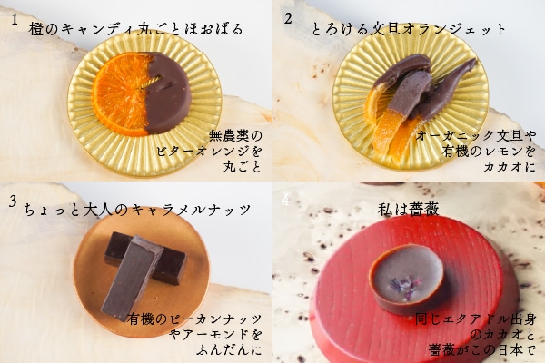 エクアドル産の有機ローカカオを使い、最高のパートナーと掛け合わせたチョコレートを20種類作りました。